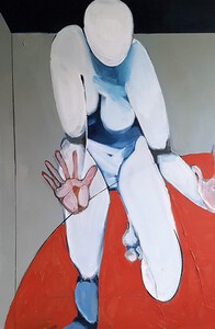 2017Geverfd essenhout op sloophouten sokkel. Beeld is incl. sokkel van h80xb39xd39.