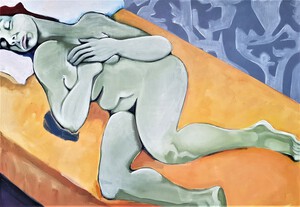 2017Naar Egon Schiele's "Edith Schiele in gestreepte jurk".
